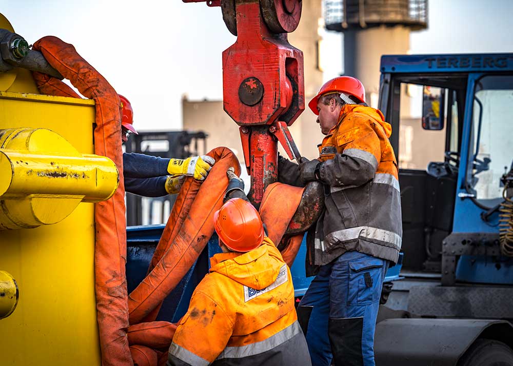 Als Anschläger gewährleistest du, dass Ware sicher von einem Hebezeug angehoben und bewegt werden kann. Du bereitest die geeigneten Anschlagmittel wie Ketten, Seile, Gurte oder Containergeschirre vor und befestigst diese an der Last und am Kranhaken. Die Tragkraft der Anschlagmittel musst du ebenso wie das Gewicht der Ware und deren Masseschwerpunkt berücksichtigen. Dabei arbeitest du per Funk oder Handzeichen eng mit dem Kollegen im Kran oder in der Brücke zusammen. Bei ferngesteuerten Kränen kannst du diesen auch selber bewegen.