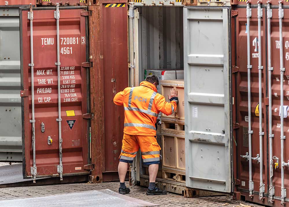 Nicht jeder Container verlässt das Terminal mit der Ware, mit der er geliefert wurde. Mitunter wird er ausgepackt, die Ware bearbeitet oder neu zusammengestellt. Deine Aufgabe ist es dann, ihn neu zu packen. Du stellst dir die zu packende Ware selber zusammen oder Kollegen bringen sie dir. Dann packst du den Container so, dass die Ware während des Transports nicht verrutscht oder beschädigt werden kann. Du musst sie also im Container sichern.